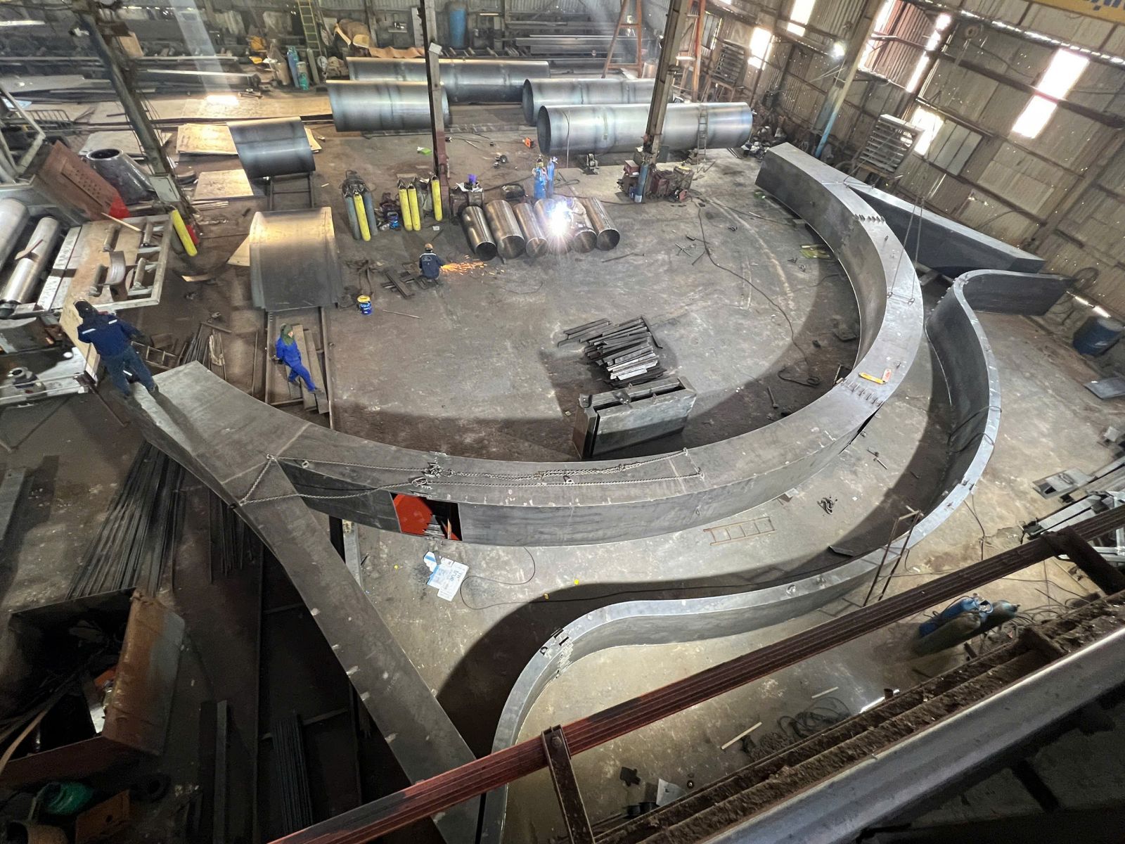 Toàn bộ kết cấu thép cổng chào được gia công đồng bộ tại xưởng theo bản vẽ kỹ thuật đã được phê duyệt, đảm bảo:
