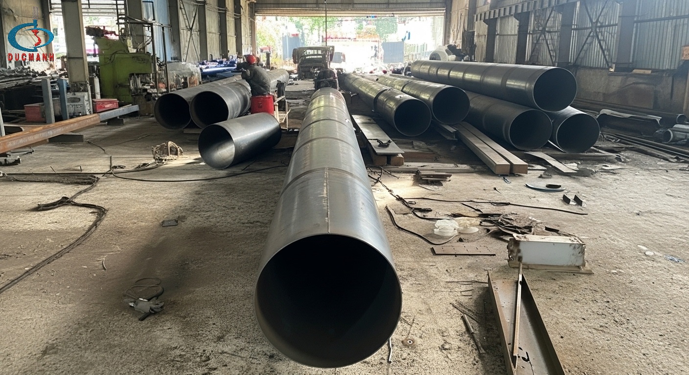 | Kiểm định chất lượng | Kiểm tra cơ lý thép, siêu âm mối hàn, đo kích thước và độ tròn. | Cung cấp hồ sơ CO – CQ đầy đủ. |